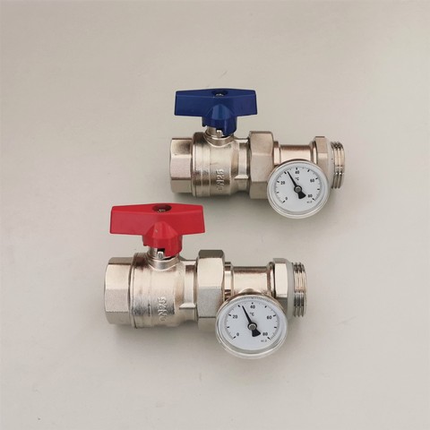 Vanne à boisseau sphérique en laiton 1 pouce femelle x mâle BSPP avec jauge de température pour la distribution d'eau par le sol chauffant